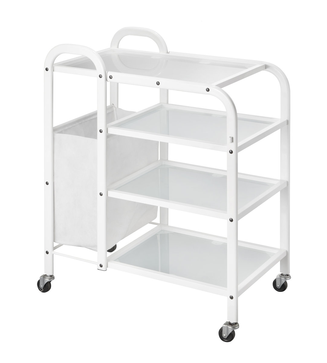Μεταλλικό λευκό τρόλεϊ αισθητικής με μοντέρνο και πρακτικό σχεδιασμό.