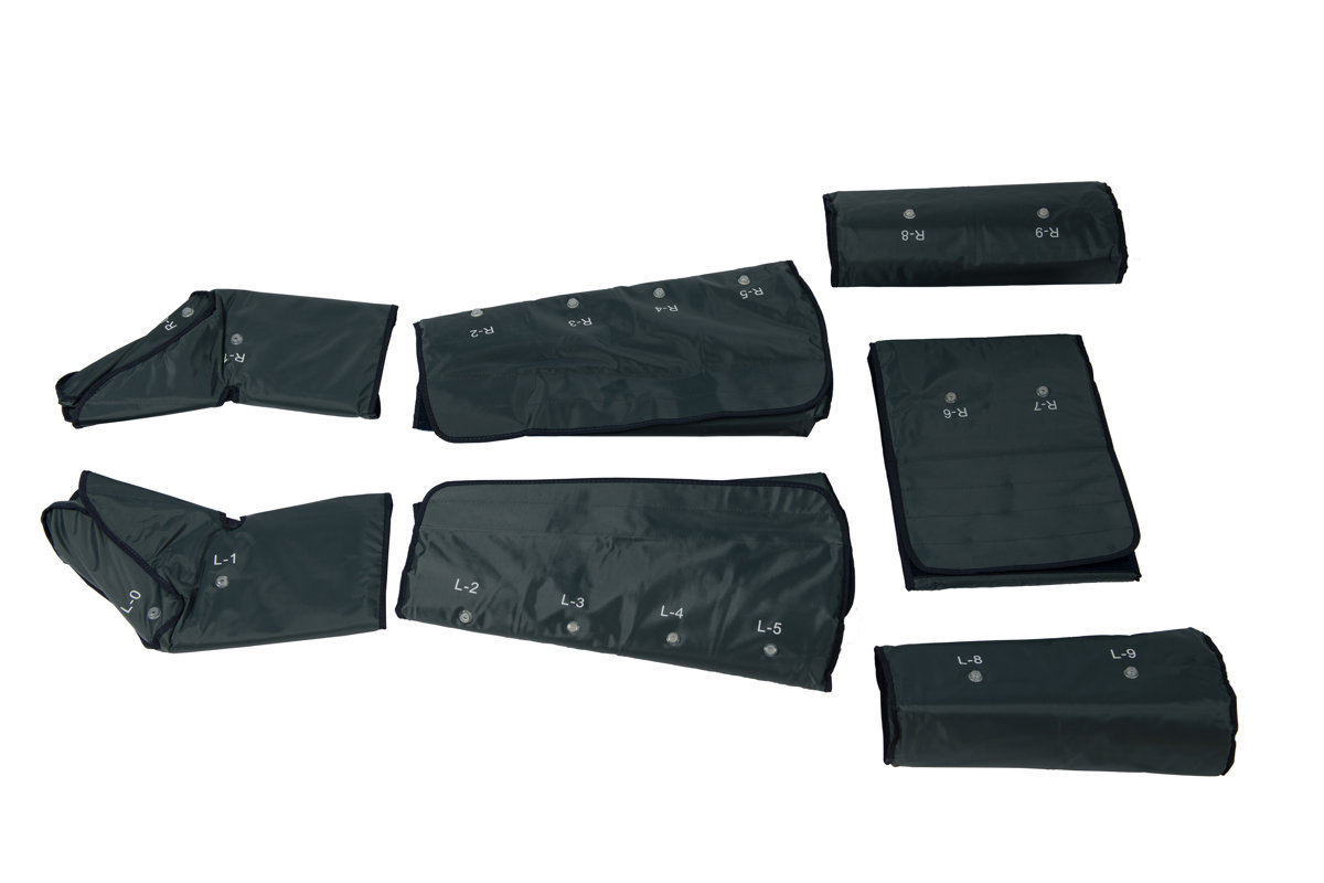 Καλύπτει πατούσες, πόδια, κοιλιά και χέρια και διαθέτει θήκη για την αποθήκευση των καλωδίων. Ιδανικό για να βελτιώσει την κυκλοφορία και να διευκολύνει την απομάκρυνση του λίπους μέσω της ενεργοποίησης της λεμφικής αποσυμφόρησης.